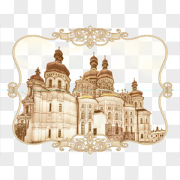 金色手绘复古建筑
