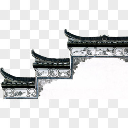 一组手绘插画中国风古代建筑瓦片屋檐套图合集元素四