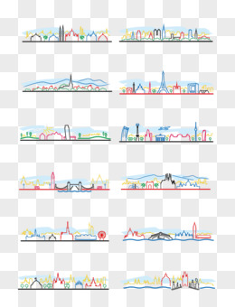 一组手绘国外代表性线描建筑套图素材
