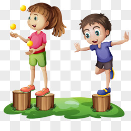 小孩玩兵乓球和单脚站立