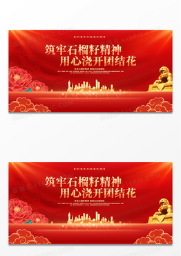 红金党建民族团结牢筑石榴籽精神用心浇开团结花展板