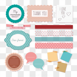 卡通矢量可爱潮流撞色胶布撕纸标签装饰素材