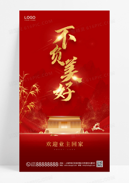 红色房地产大气金字欢迎回家地产房地产交房手机宣传海报