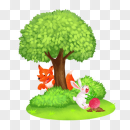 卡通狡猾的狐狸逮捕小兔子免抠素材