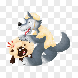 卡通披着羊皮的狡猾大灰狼和受惊的小绵羊素材