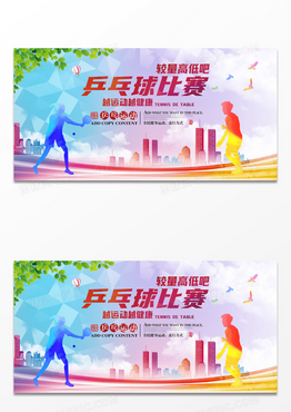 大气创意乒乓球比赛较量高低吧乒乓球运运动越健康宣传展板