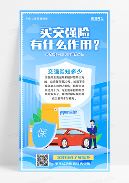 买交强险有什么作用蓝色简约汽车保单保险手机宣传海报设计