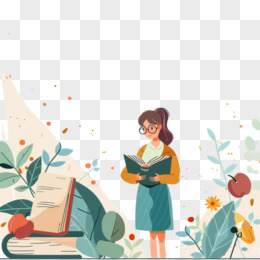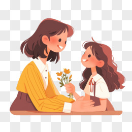 卡通风教师节学生给年迈的女老师送礼物免抠元素