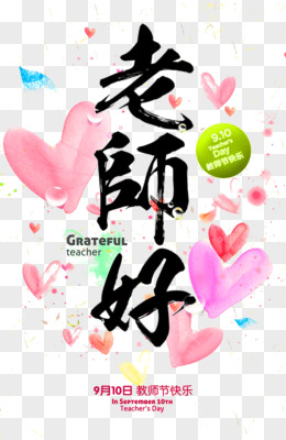 手绘抱着鲜花笑着挥手招手班主任老师元素