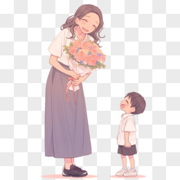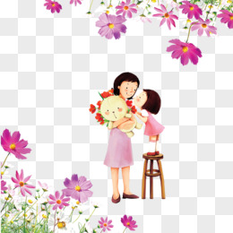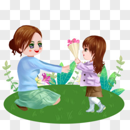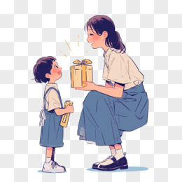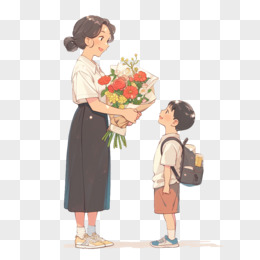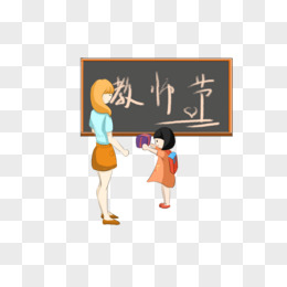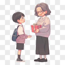 卡通风教师节学生给年迈的女老师送礼物免抠元素