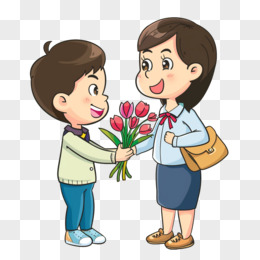 卡通风教师节学生给男老师送礼物场景免抠元素