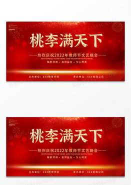 大气红金教师节晚会节日桃李满天下9月10号教师节宣传展板设计