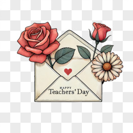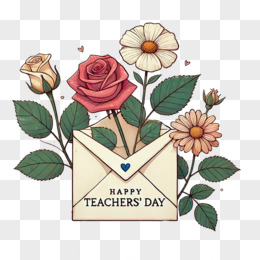 手绘抱着鲜花笑着挥手招手班主任老师元素