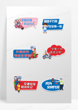 一组卡通扁平文明行车交通安全教育手举牌合集素材