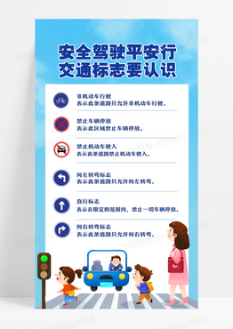 蓝色安全驾驶平安行交通标志要认识ui手机文案海报交通安全手机安全海报