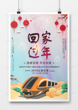 2019年猪年春运回家过年新中式创意海报设计
