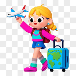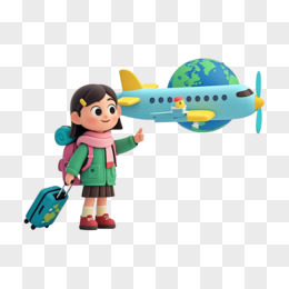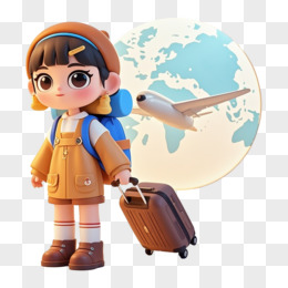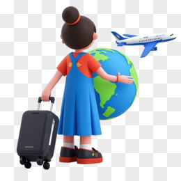 3D盲盒女孩环球旅行旅游的故事免抠元素