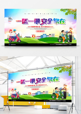 手绘卡通简约一盔一带安全常在交通安全日宣传展板设计