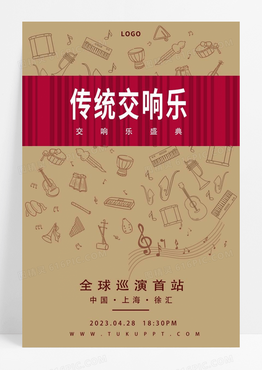 红色简约乐器传统交响乐音乐会宣传海报新年音乐会