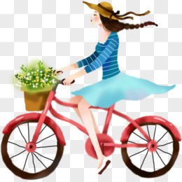 卡通手绘免抠喝咖啡郊游的女孩免抠元素