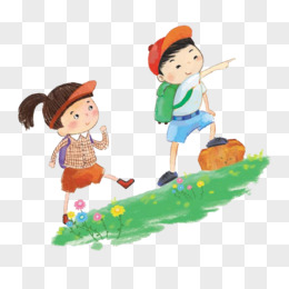 卡通手绘免抠小女孩小男孩一起玩风车元素