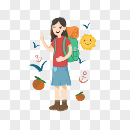 手绘卡通女孩野营探险游玩出游郊游元素