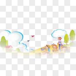 卡通手绘男孩在郊外抓蝴蝶免抠元素