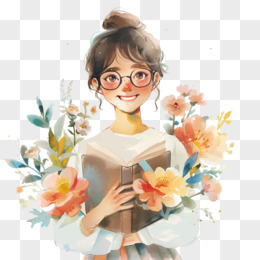卡通风教师节抱着书本的女教师蓝色剪影免抠元素