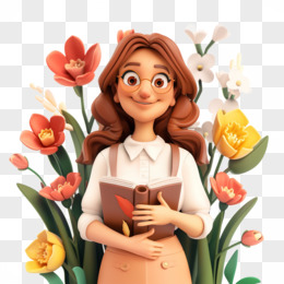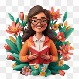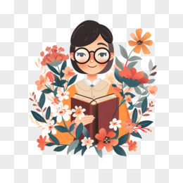 卡通风女教师坐在椅子上给学生上课免抠元素