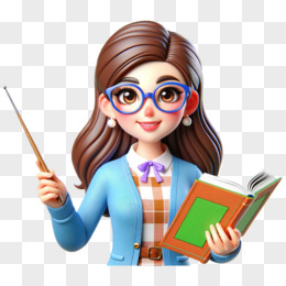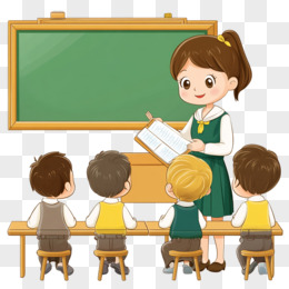 卡通风女老师在桌子前给学生解答问题免抠元素