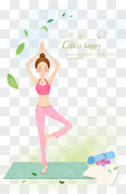 瑜伽绿叶卡通贴画女孩