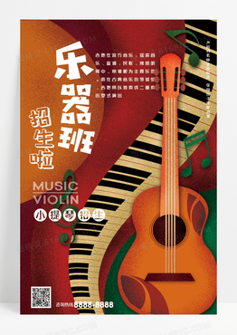 黄色音乐培训乐器班招生啦教育辅导海报设计