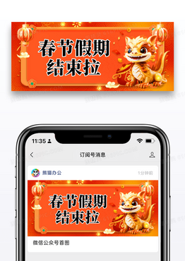 橙黄色简约春节假期结束通知微信公众号封面图片