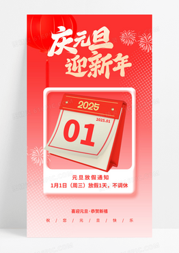 红色简约蛇年3d2025元旦假期放假通知立体日历海报
