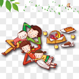 手绘卡通一家三口擦桌子打扫场景免抠素材
