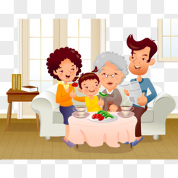 手绘插画风一家四口席地而坐合影全家福其乐融融元素