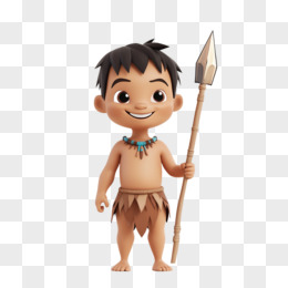 3D插画原始人狩猎男孩形象免抠元素