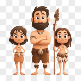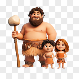 3D插画原始人家庭免抠元素