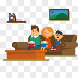 卡通一家人坐沙发上看电视
