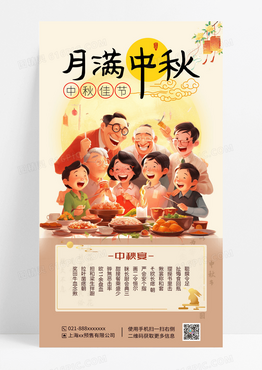 橙色渐变中秋家宴家庭团圆聚餐海报