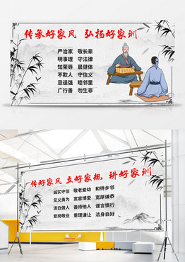 复古中式传承好家风弘扬好家训家规宣传双面展板