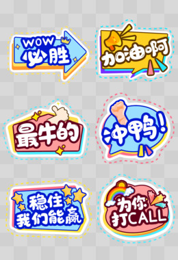 一组卡通彩色加油手举牌免抠装饰为你打call素材