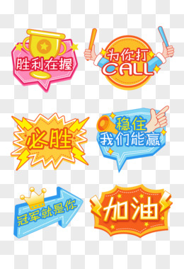 一组卡通彩色加油手举牌免抠装饰加油啊素材