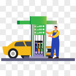 卡通矢量单人给汽车加油场景素材