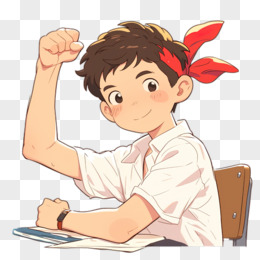 卡通手绘男孩握拳考试加油打气免抠元素