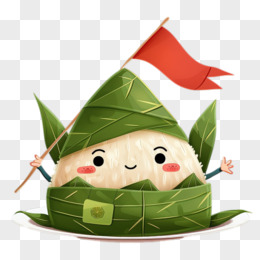 端午节可爱粽子举着小红旗加油打气免抠元素