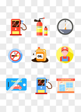 一组扁平风加油站图标套图合集