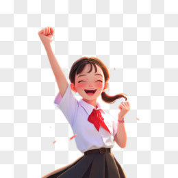 卡通高考完开心欢呼庆祝的女学生免抠元素