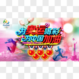手绘奥运游泳比赛标语小贴纸装饰素材