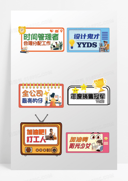 彩色可爱卡通企业加油励志网络用语手举牌异形